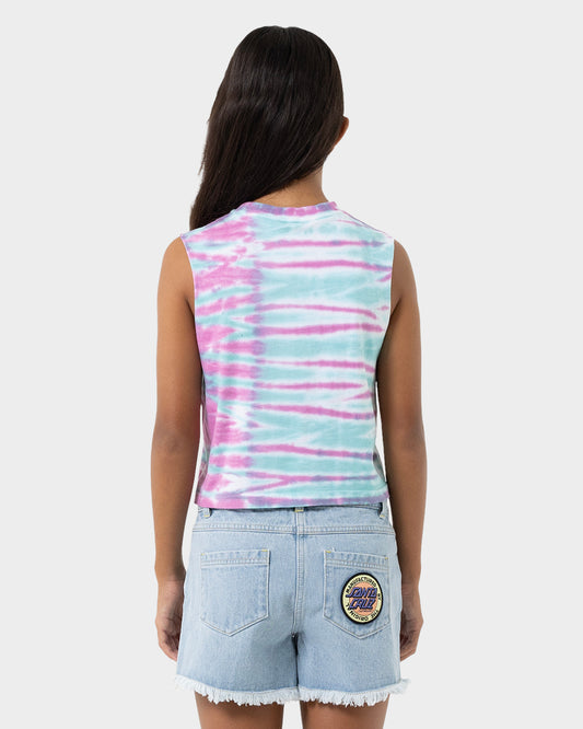 Checker Block Girls Cropped Muscle T-shirt Ocean Tie Dye