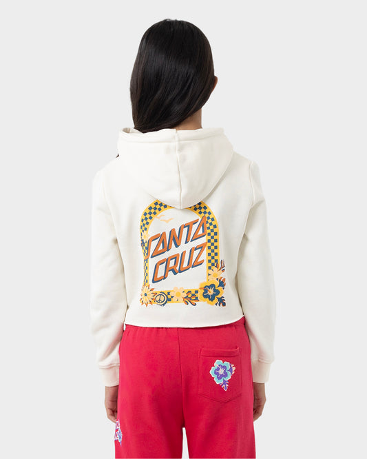 Free Spirit Floral Girls Cropped Pullover Hoodie Cream