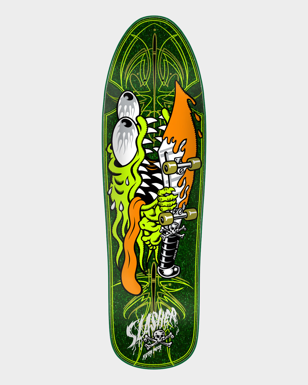 9.23in Meek Green Pinstripe Slasher Santa Cruz Skateboard Deck