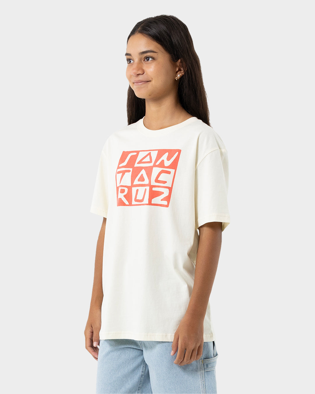 Girls Santa Cruz oversize fit t-shirt featuring screen print of the Checker Block artwork.
