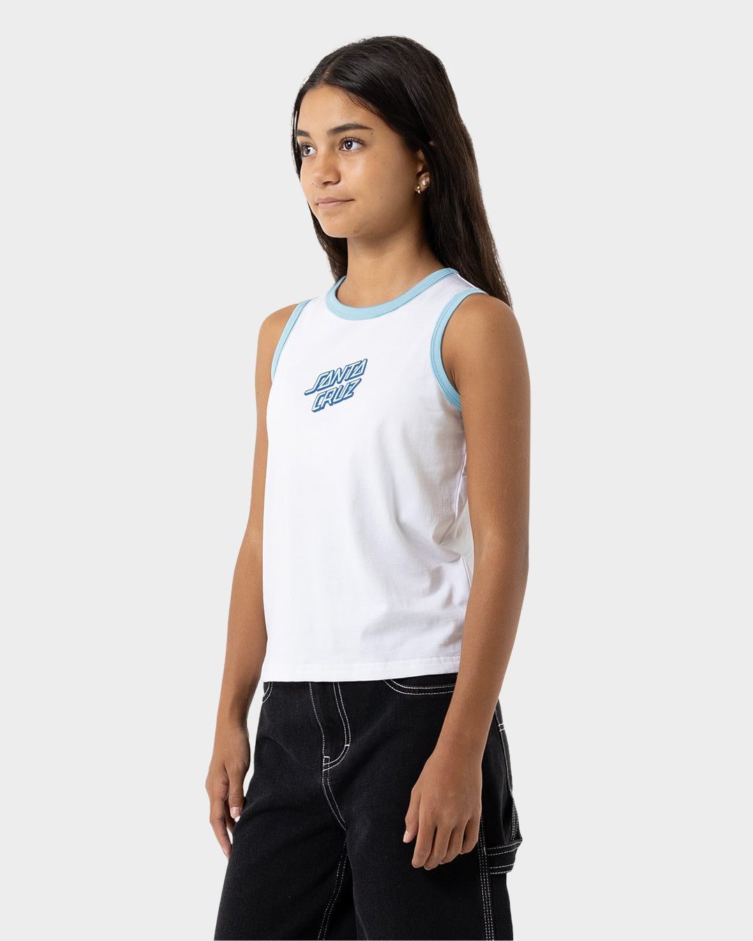 Girls Santa Cruz loose fit tank top featuring screen print of the Checker Heart Stack artwork.