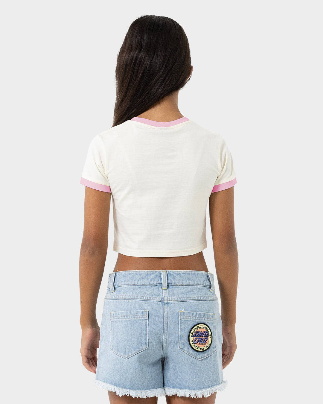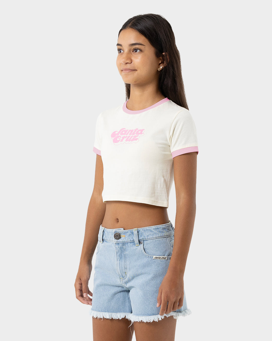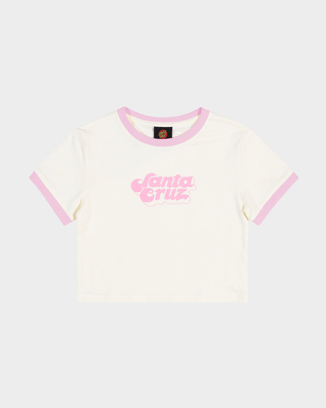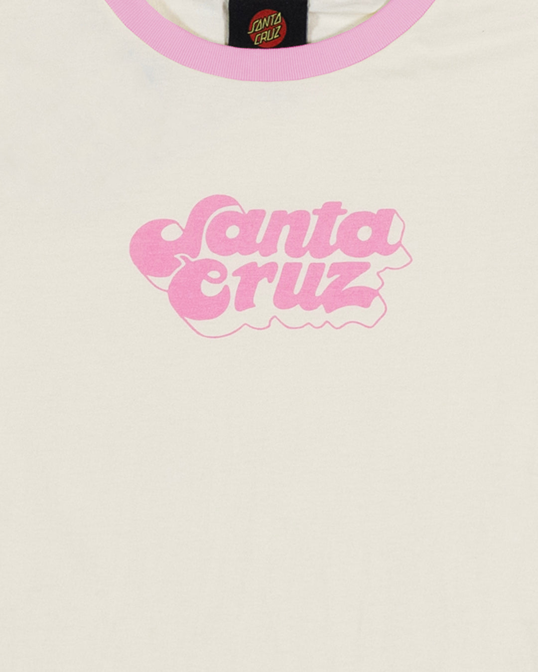 Girls Santa Cruz baby fit t-shirt featuring screen print of the Groovy Stack artwork.