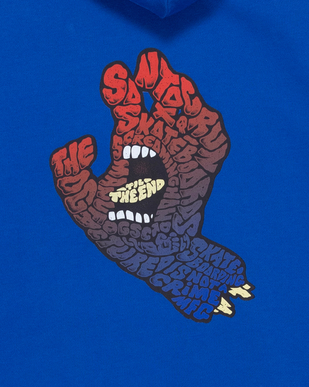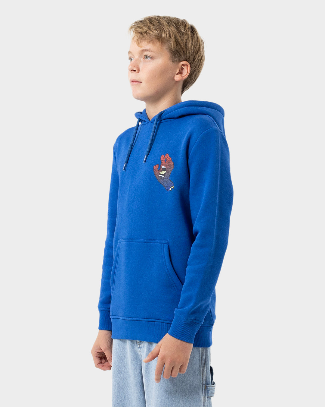 Boys Santa Cruz regular fit pullover hoodie featuring screen print of the Letter Hand Fade artwork.