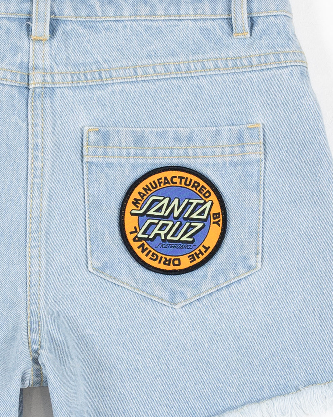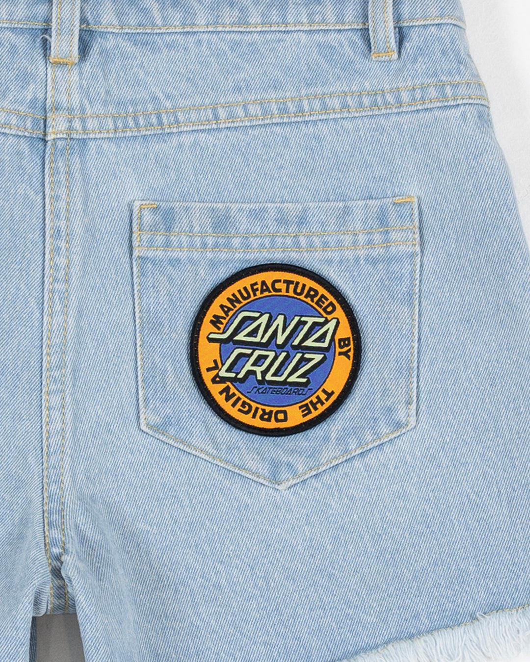 Girls Santa Cruz shorts featuring woven label of the MFG Retro Dot artwork.