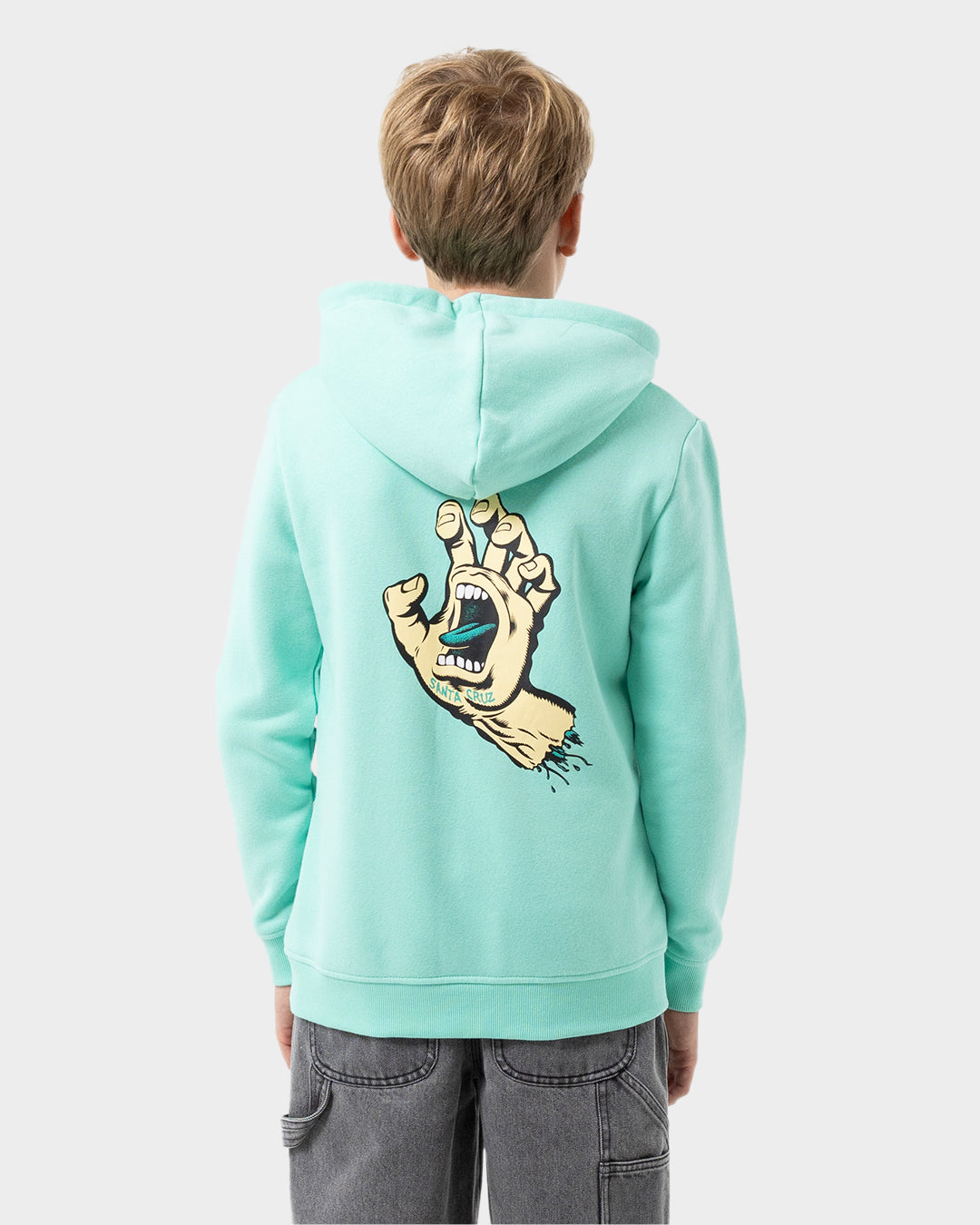 Boys Santa Cruz regular fit pullover hoodie featuring screen print of the Opus Screaming Hand artwork.