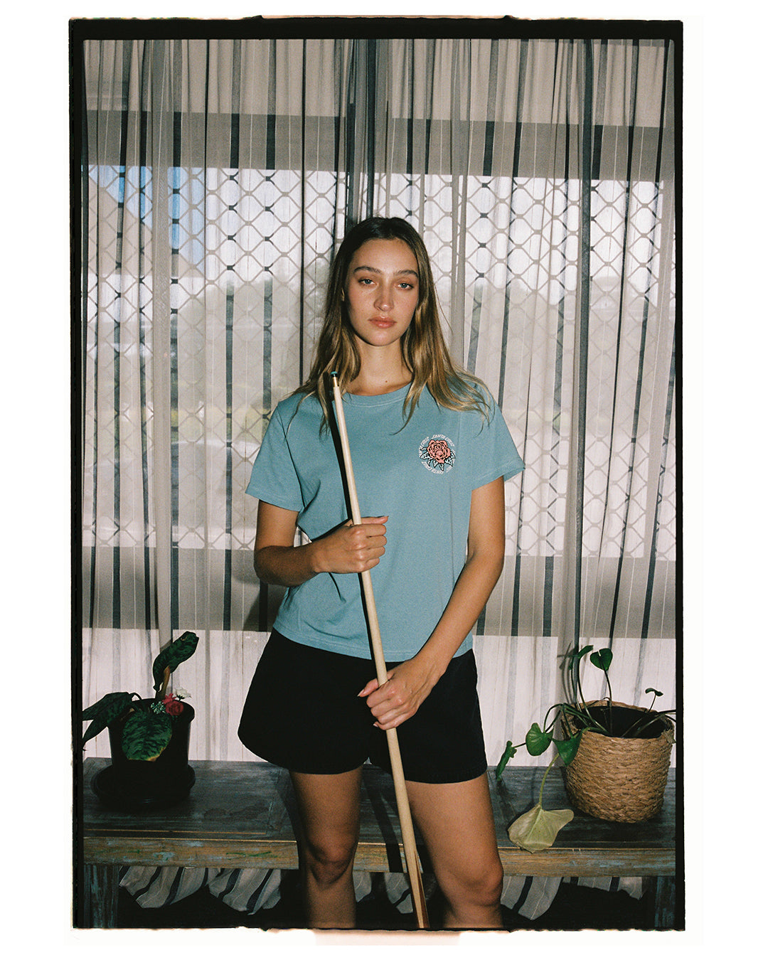 Rosette Tower Ring Women's T-shirt Vintage Blue