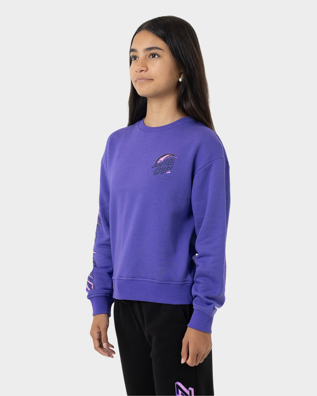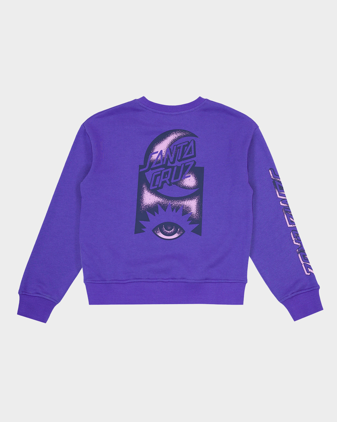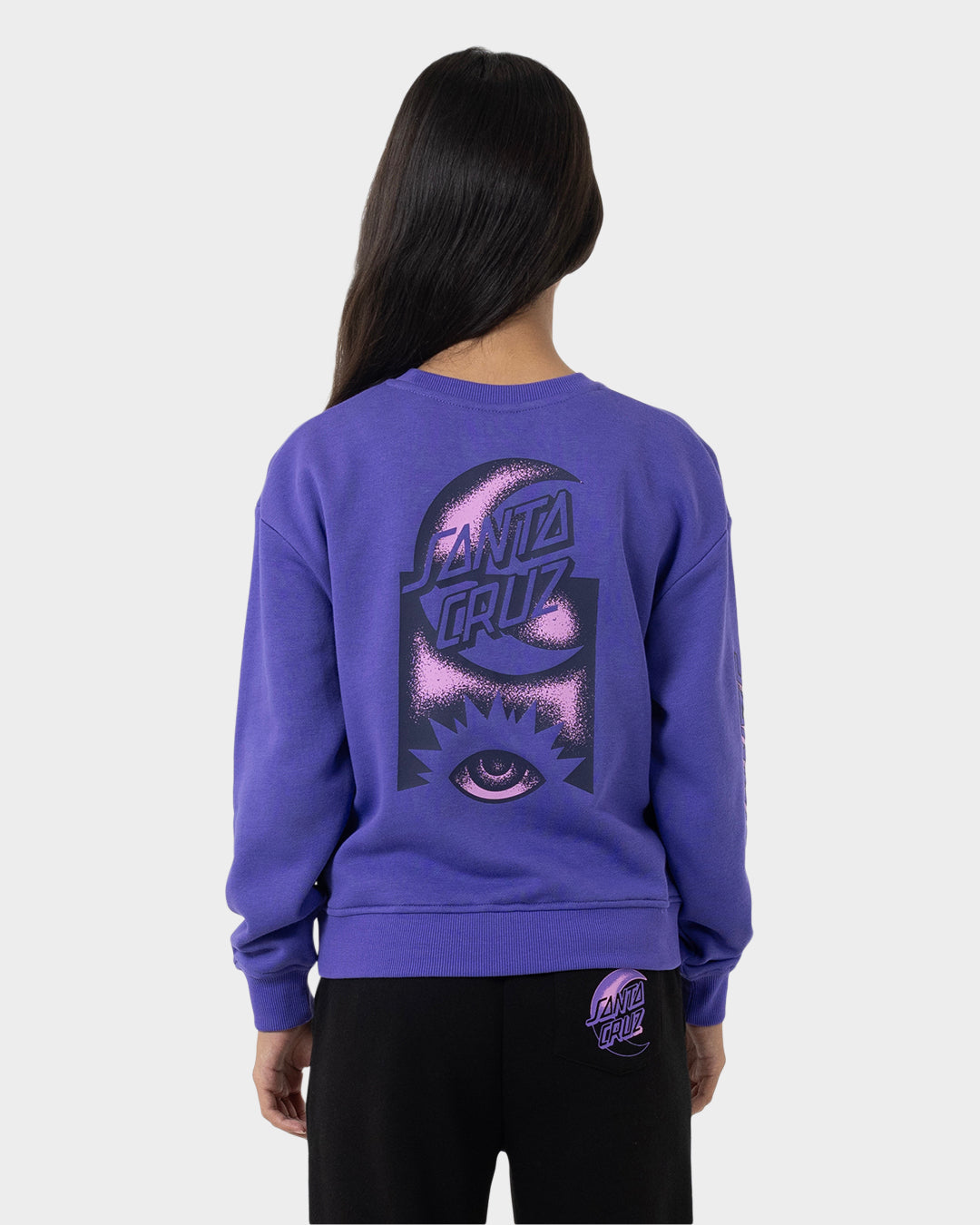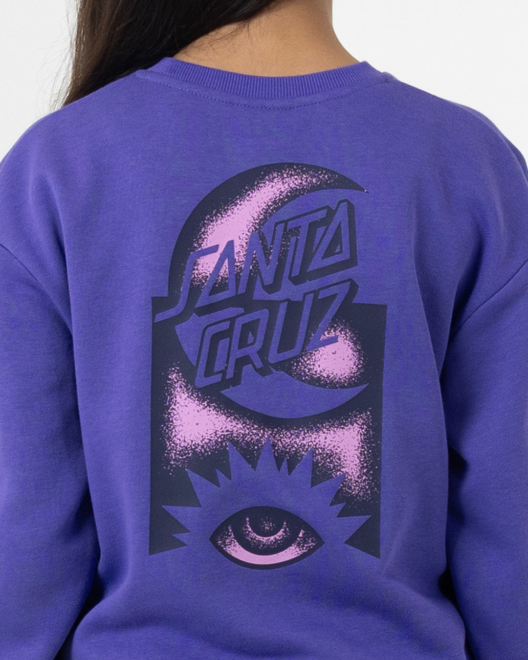 Girls Santa Cruz regular fit crew neck sweater featuring screen print of the Seeing Moon Dot artwork.