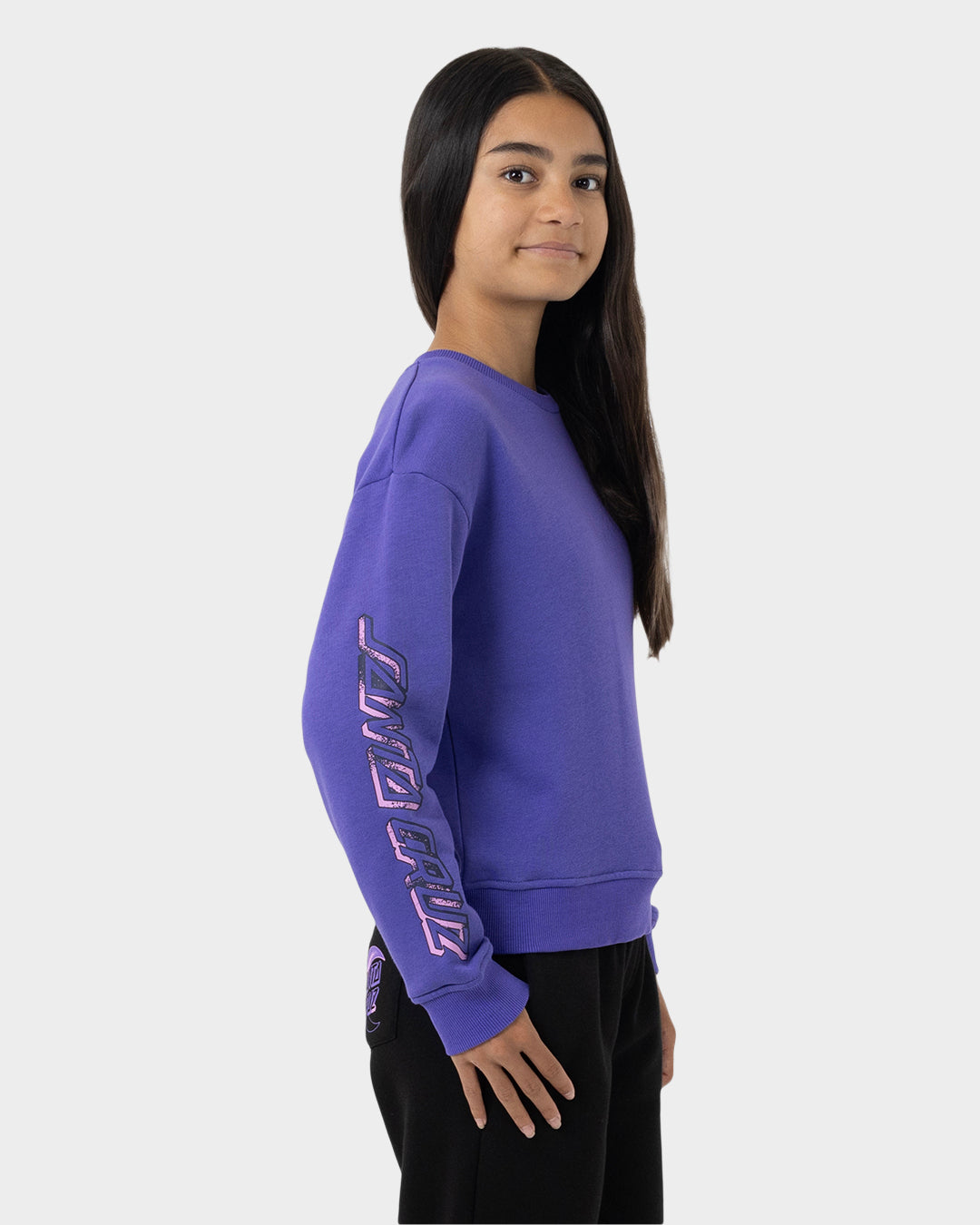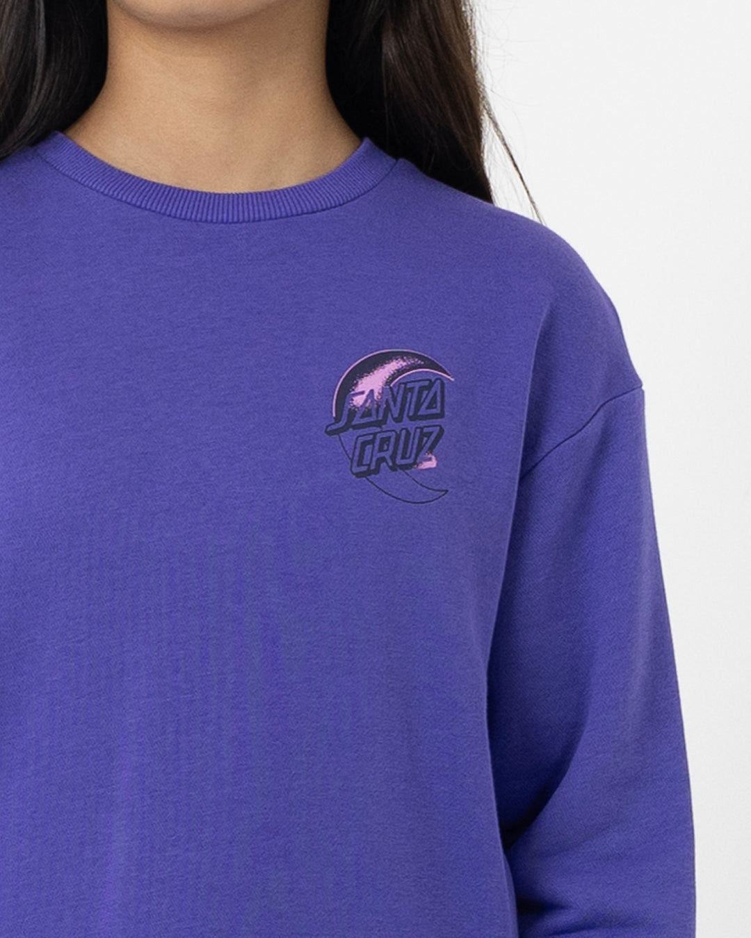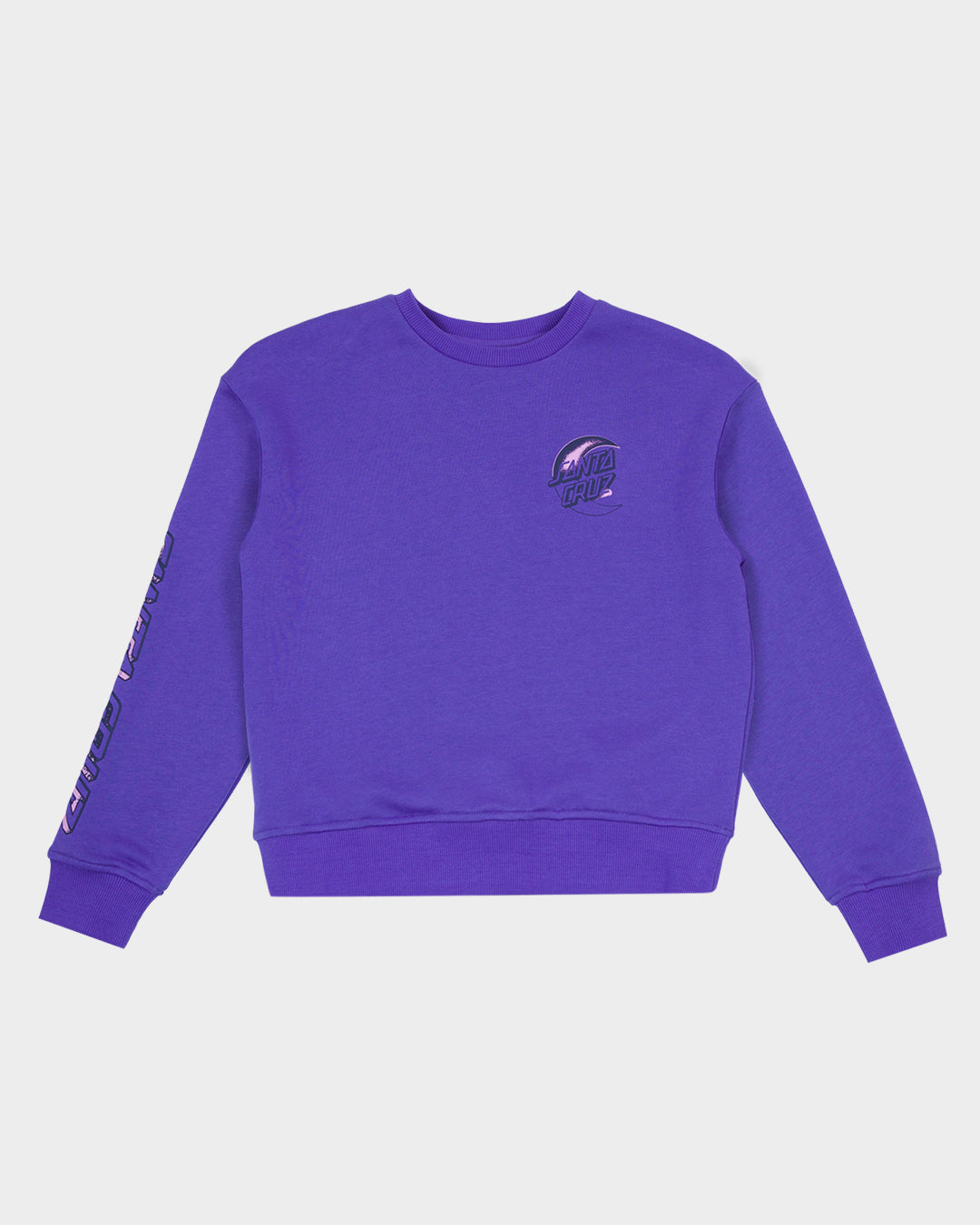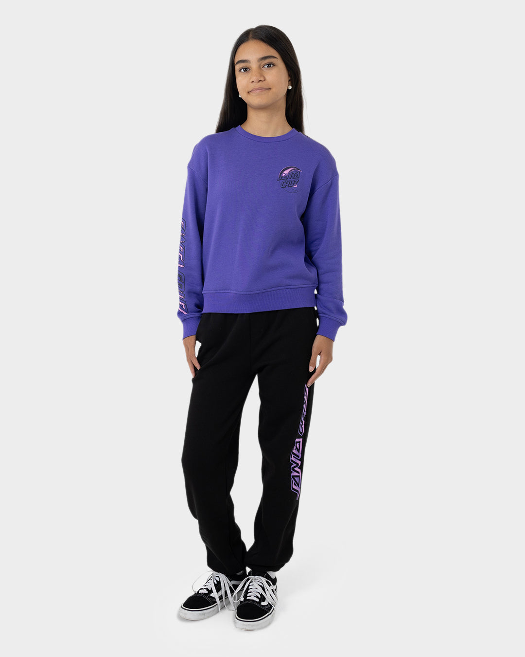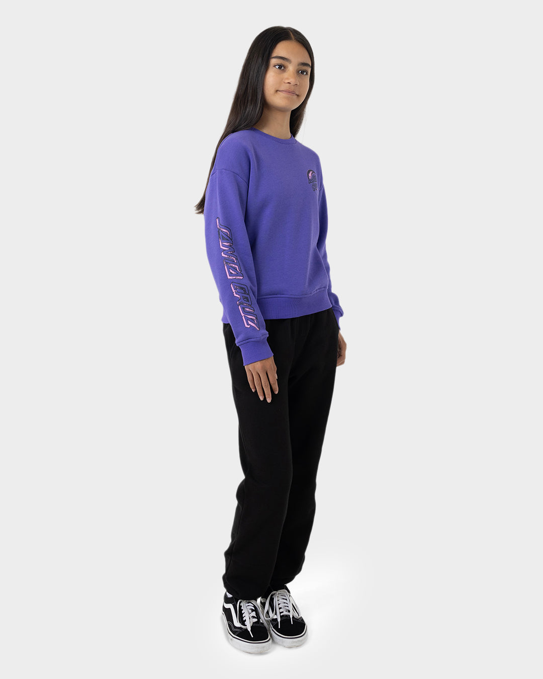 Girls Santa Cruz regular fit crew neck sweater featuring screen print of the Seeing Moon Dot artwork.