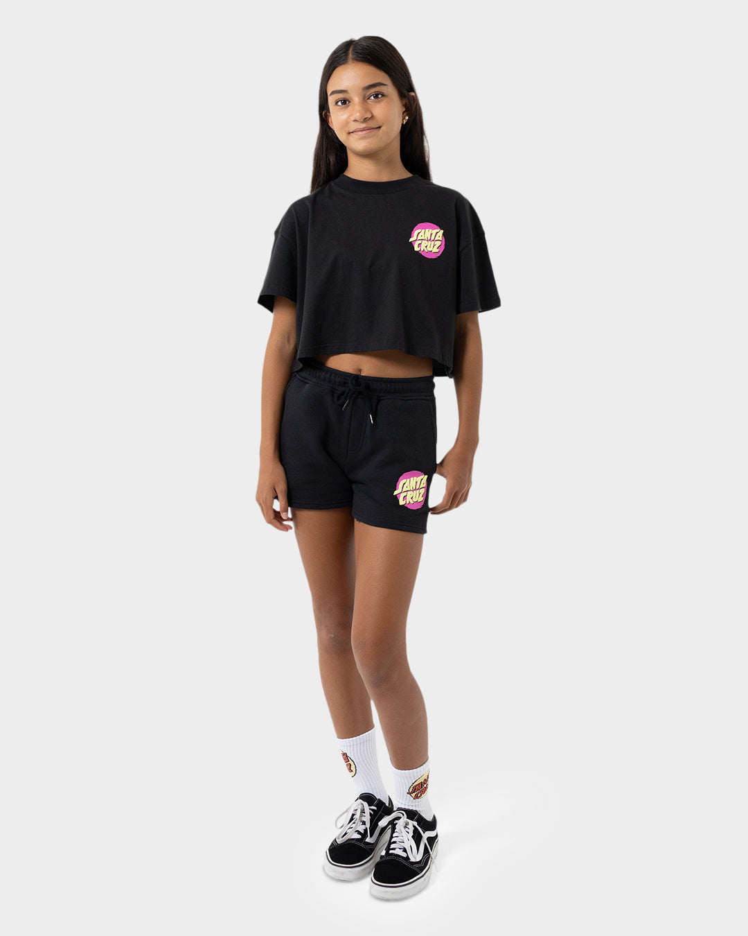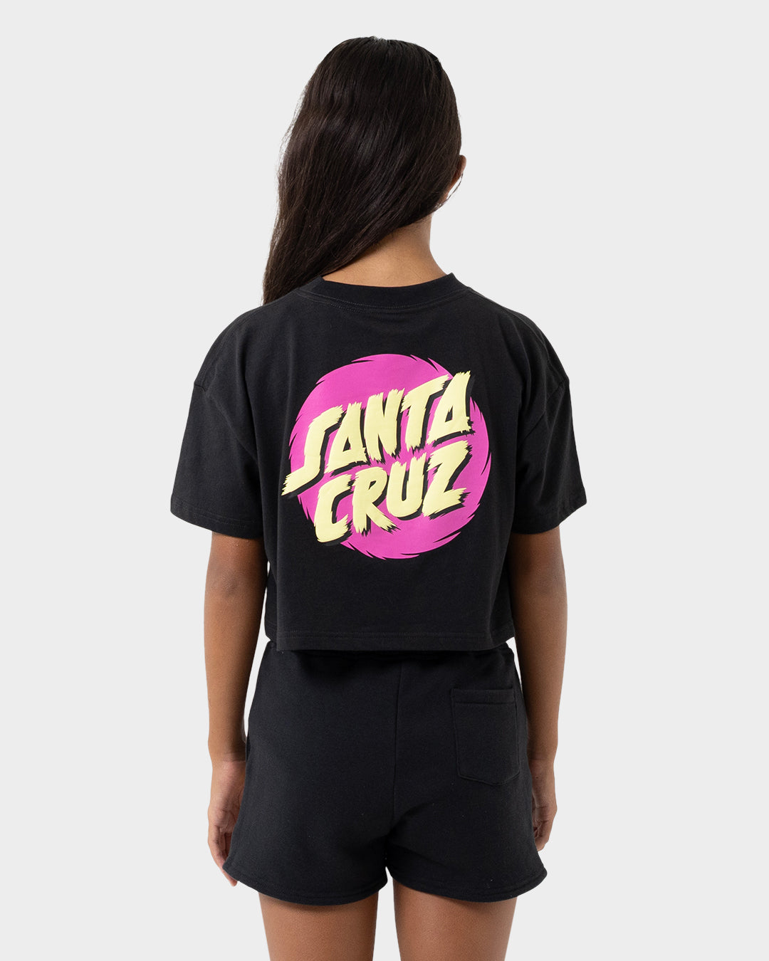 Girls Santa Cruz oversize cropped t-shirt featuring puff screen print of the Style Dot artwork.