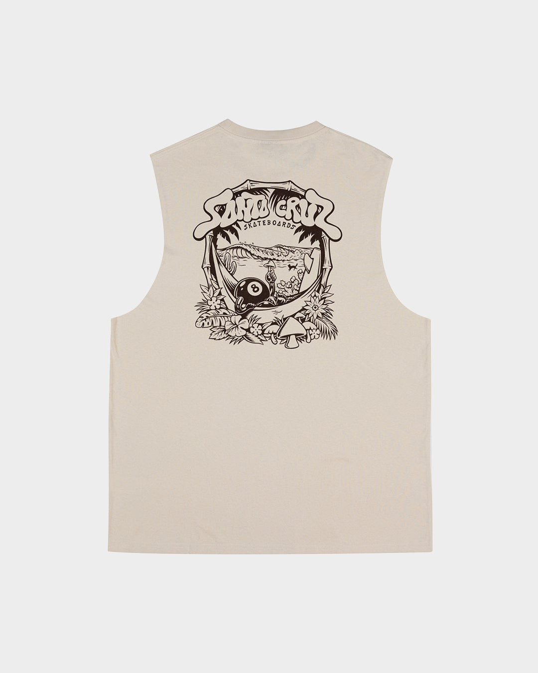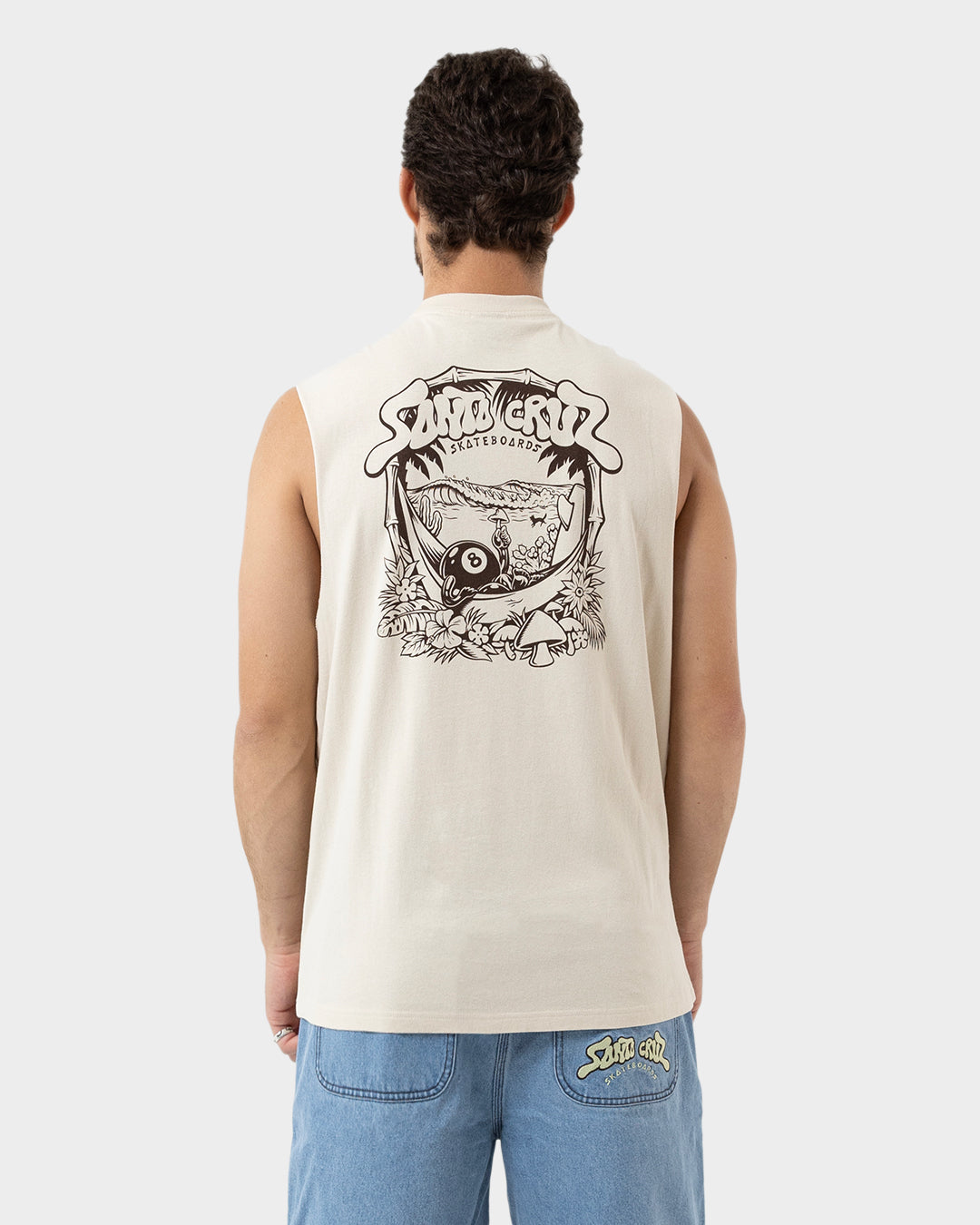 Men's Santa Cruz muscle t-shirt featuring print of the Winkowski 8Baller Trip Arch Mono artwork.